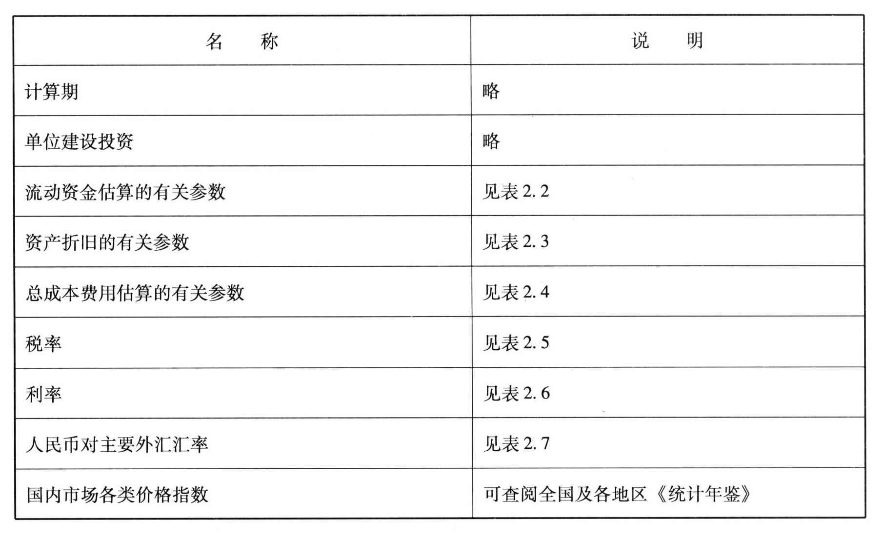 5.列入说明部分的参数(见表2.13-1、表2.13-2)是除正式发布的各行业建设项目财务评价参数外,还有其他本次参数测算中实际工作过程的成果,反映了各行业的情况和各方面专家的判断,对项目评价人员具有一定的参考价值。