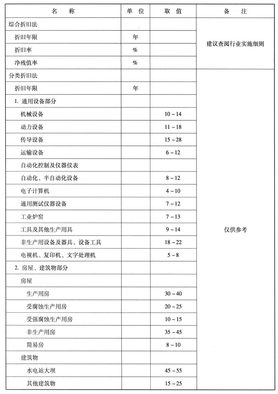 表2.1-3 资产折旧的有关参数