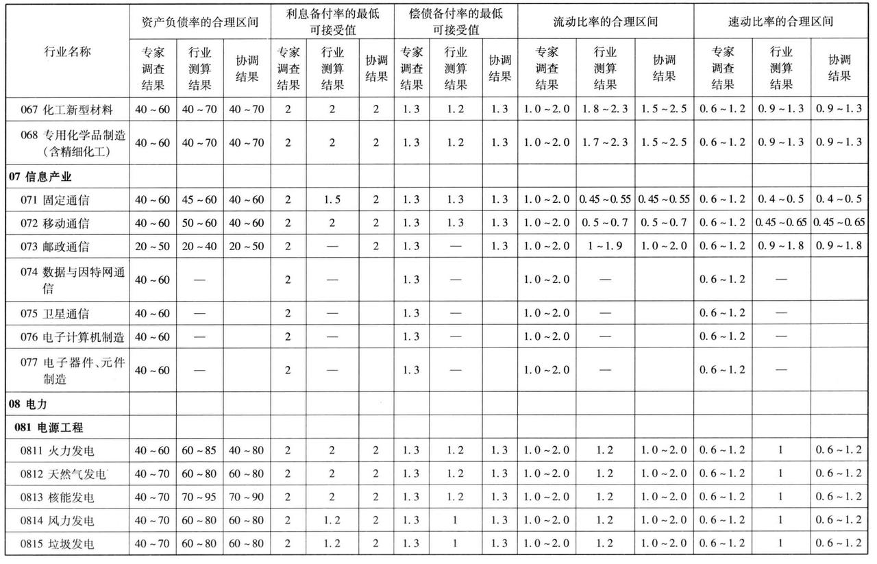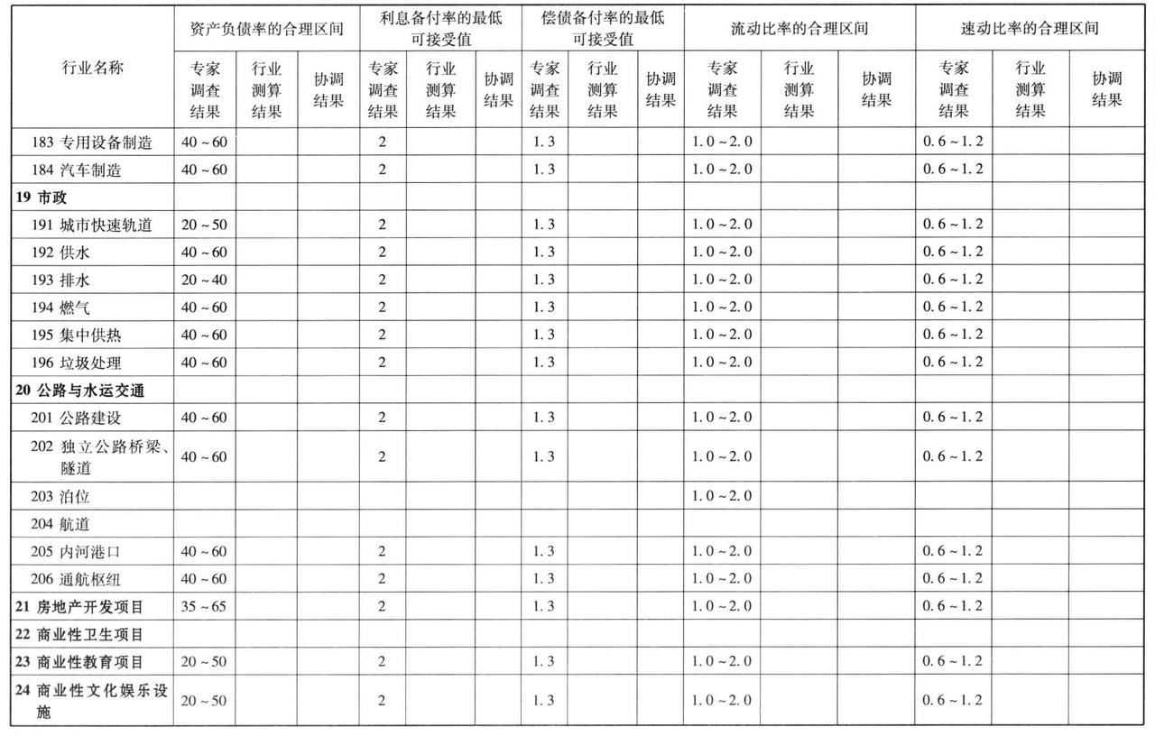 有些参数是以单一数值的形式体现的,如财务基准收益率;而有些参数值是以“合理区间”的形式体现的,如总投资收益率、资产负债率等。