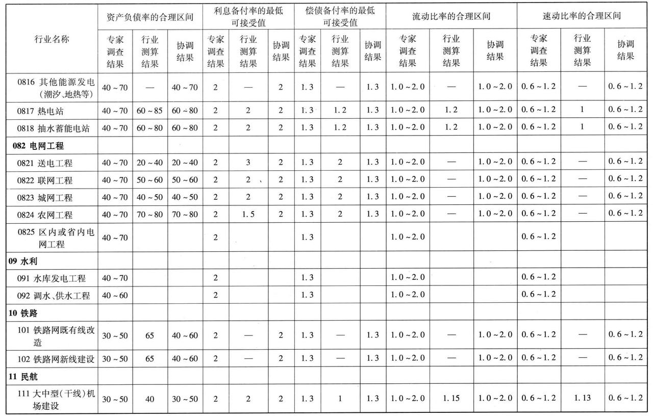 表2.13-2 部分行业建设项目偿债能力测算与协调