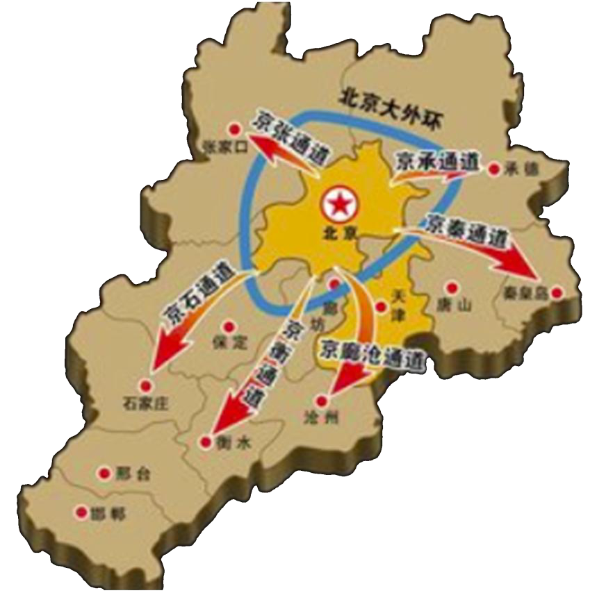 - “三轴”: 指京津、京保石、京唐秦三个产业发展带和城镇聚集轴,构成了支撑京津冀协同发展的主体框架。