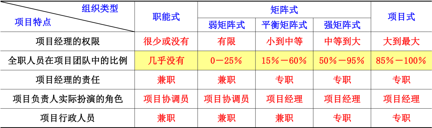 项目管理组织结构的三种基本形式 (职能式、矩阵式和项目式)各有其特点